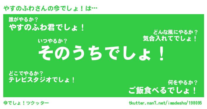 | 伝説のあだ名 | 『伝説のスナイパーやすのふわ』 |