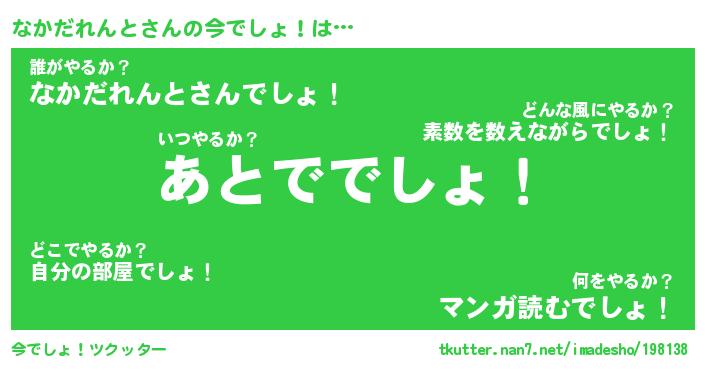 | 料理風あだ名 | 『節約★なかだれんとと油揚げの玉子丼』 |