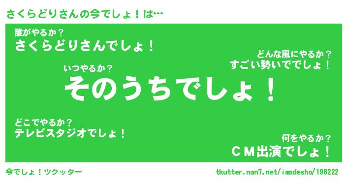 | 胡散臭い通販商品みたいなあだ名 | 『必ず成功する霊験あらたかなお札…その名も「さくらどり」』 |