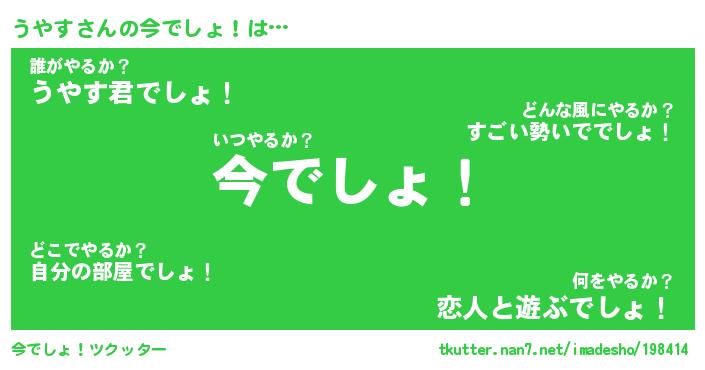 | 意味不明あだ名 | 『ペロリンうやす』『うやすフォーエバー』 |