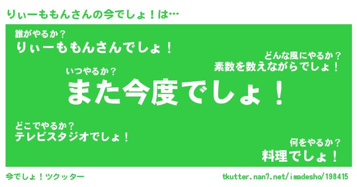 | 料理風あだ名 | 『ネギたっぷりりぃーももんの南蛮漬け』 |
