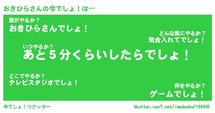 | 意味不明あだ名 | 『ペロリンおきひら』『永久保存おきひら』 |