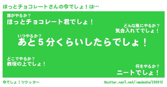 | 料理風あだ名 | 『ネギたっぷりほっとチョコレートの南蛮漬け』 |