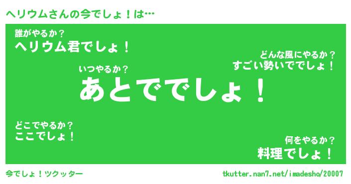 | 料理風あだ名 | 『節約★ヘリウムと油揚げの玉子丼』 |