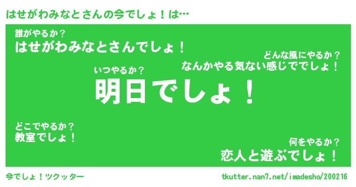 | 2回繰り返すあだ名 | 『はせはせ』『ははせせ』『ねとねと』 |