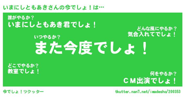 | 肩書あだ名 | 『いまにしともあき御曹司』 |