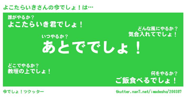 | 料理風あだ名 | 『節約★よこたらいきと油揚げの玉子丼』 |