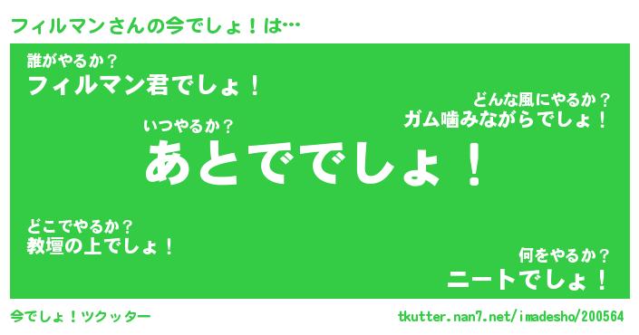 | ヘコむあだ名 | 『フィにゅー』『なまこ酢』『フィを』 |