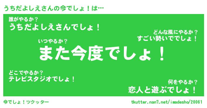 | 胡散臭い通販商品みたいなあだ名 | 『億万長者になれるブレスレット…その名も「うちだよしえ」』 |