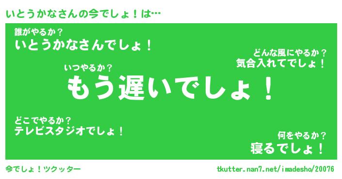 | ヘコむあだ名 | 『いとふぇ~』『牛乳』『いとお』 |