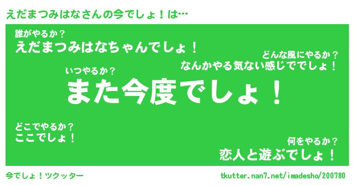 | 胡散臭い通販商品みたいなあだ名 | 『億万長者になれる霊験あらたかなお札…その名も「えだまつみはな」』 |