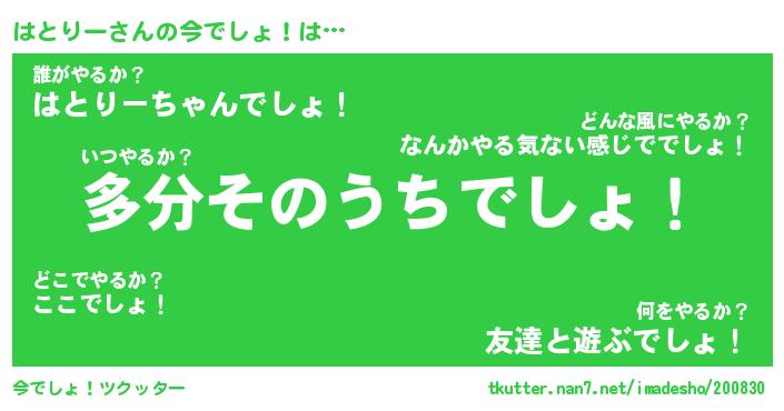 | 意味不明あだ名 | 『ペロリンはとりー』『永久保存はとりー』 |