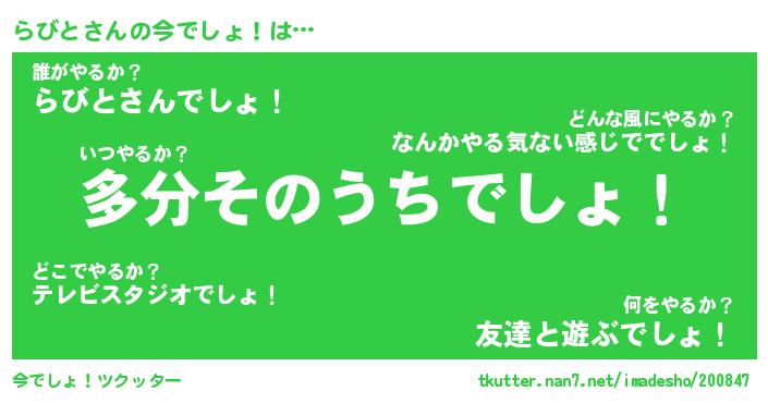 | 意味不明あだ名 | 『ペロリンらびと』『らびとフォーエバー』 |