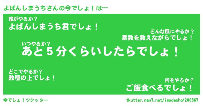 | 欧米人風あだ名 | 『マイケルよばんしまうち』 |
