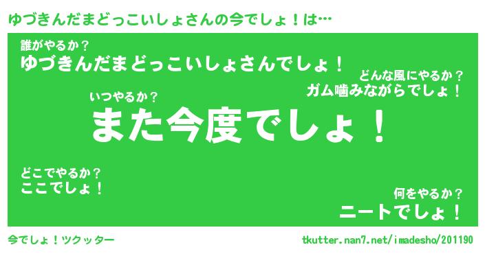| 胡散臭い通販商品みたいなあだ名 | 『億万長者になれるブレスレット…その名も「ゆづきんだまどっこいしょ」』 |