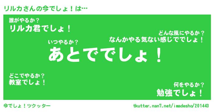 | 意味不明あだ名 | 『ペロリンリルカ』『リルカフォーエバー』 |