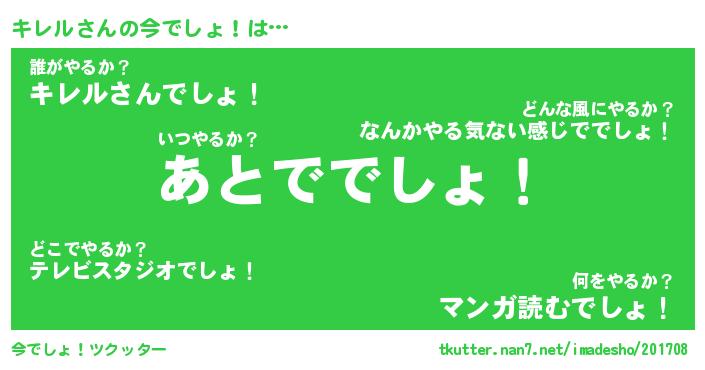 | ヒーロー風カッコイイあだ名 | 『スーパーキレル』『ウルトラキレルマン』 |