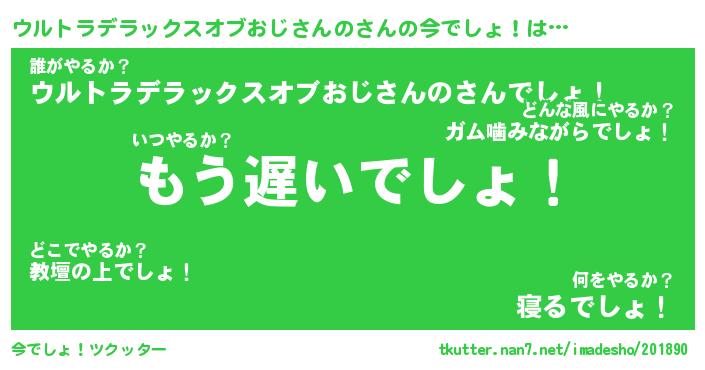 | 胡散臭い通販商品みたいなあだ名 | 『必ず成功する霊験あらたかなお札…その名も「ウルトラデラックスオブおじさんの」』 |