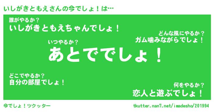 | 胡散臭い通販商品みたいなあだ名 | 『モテモテ間違いなし霊験あらたかなお札…その名も「いしがきともえ」』 |