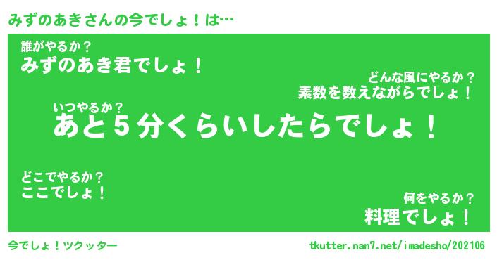 | 料理風あだ名 | 『節約★みずのあきと油揚げの玉子丼』 |