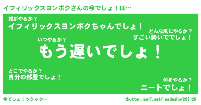 | 胡散臭い通販商品みたいなあだ名 | 『モテモテ間違いなし霊験あらたかなお札…その名も「イフィリックスヨンボク」』 |