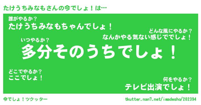 | 恥ずかしいあだ名 | 『プリティーたけうちみなも』『たけちん』 |