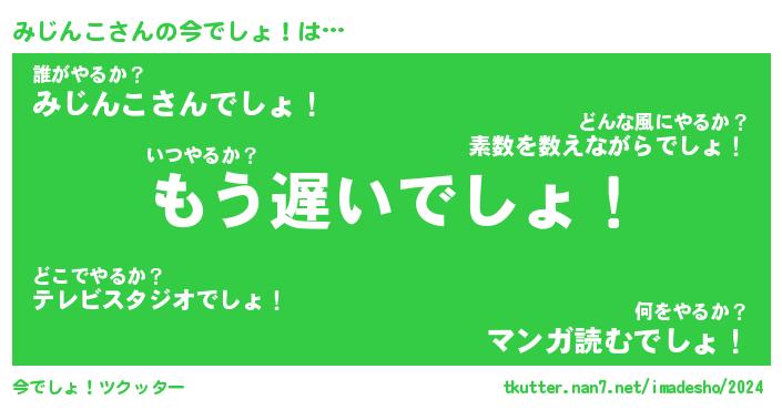 | 欧米人風あだ名 | 『マイケルみじんこ』『ウサインみじんこ』 |