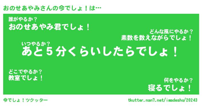 | 伝説のあだ名 | 『不死鳥のスナイパーおのせあやみ』 |