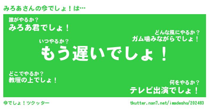 | 意味不明あだ名 | 『ペロリンみろあ』『みろあフォーエバー』 |