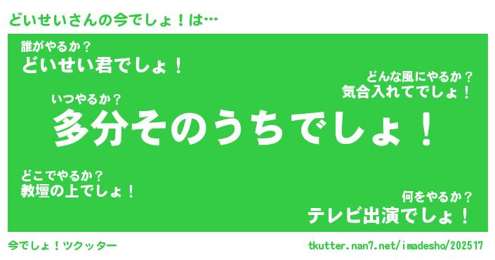 | 欧米人風あだ名 | 『マイケルどいせい』『ウサインどいせい』 |