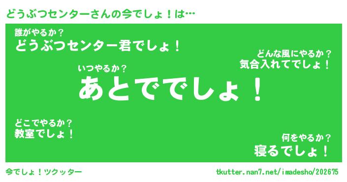 | 料理風あだ名 | 『節約★どうぶつセンターと油揚げの玉子丼』 |