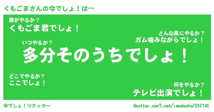 | 肩書あだ名 | 『くもごま社長』『くもごま大統領』 |