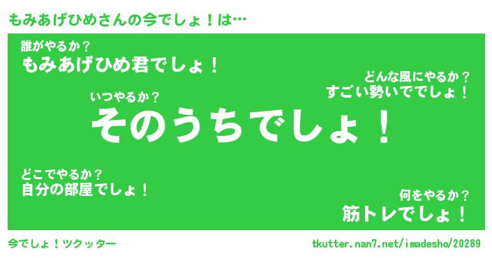 | ヘコむあだ名 | 『もみっふぃ~』『豆乳』『もみを』 |