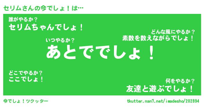 | 料理風あだ名 | 『節約★セリムと油揚げの玉子丼』 |