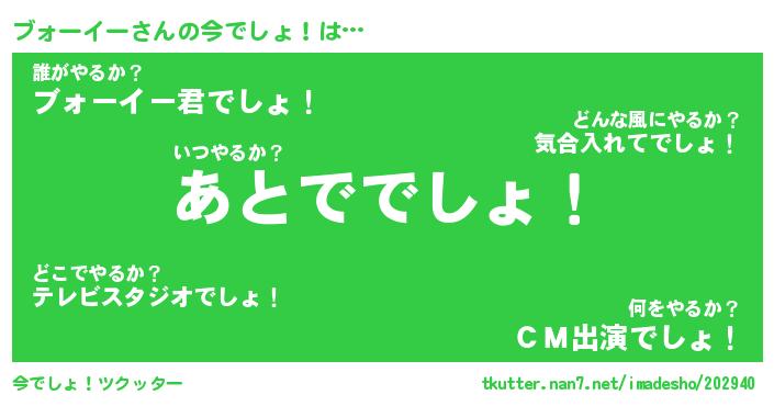 | 肩書あだ名 | 『ブォーイー店長』『ブォーイー総理大臣』 |