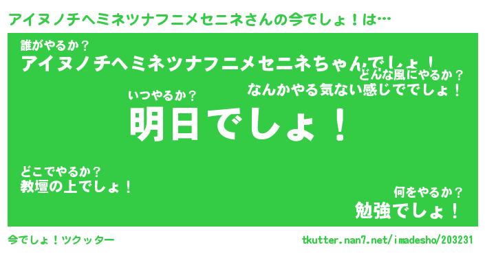 | 欧米人風あだ名 | 『マイケルアイヌノチヘミネツナフニメセニネ』 |