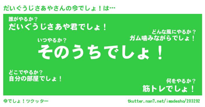 | 欧米人風あだ名 | 『マイケルだいぐうじさあや』 |