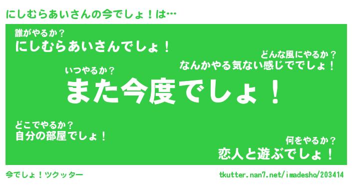 | ヒーロー風カッコイイあだ名 | 『スーパーニシムラアイ』『天弓騎士ニシ』 |