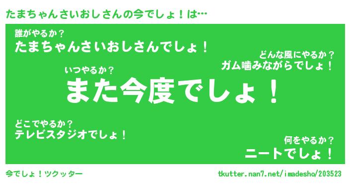 | 欧米人風あだ名 | 『マイケルたまちゃんさいおし』 |
