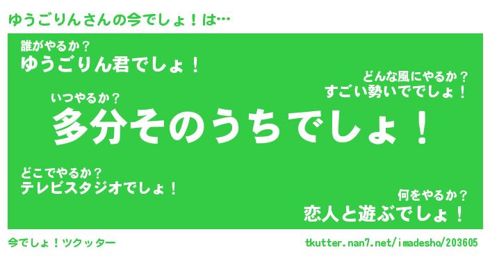 | 恥ずかしいあだ名 | 『プリティーゆうごりん』『ゆうっちょ』 |