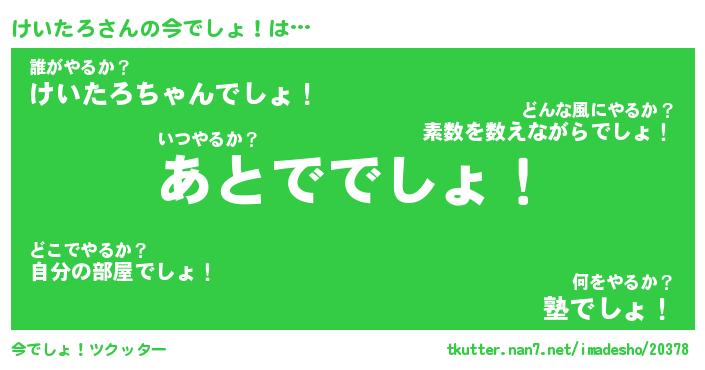 | 意味不明あだ名 | 『ペロリンけいたろ』『永久保存けいたろ』 |
