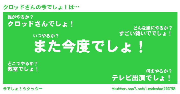 | 意味不明あだ名 | 『ペロリンクロッド』『永久保存クロッド』 |
