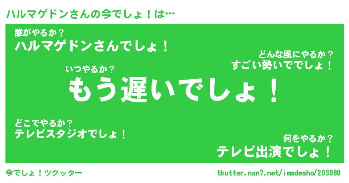 | ピコ太郎風あだ名 | 『ハコ五郎』『ピハ次郎』『ハル四郎』 |