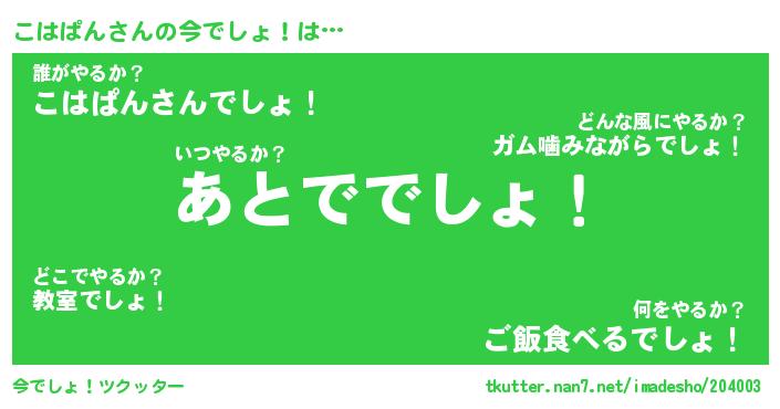 | 意味不明あだ名 | 『ペロリンこはぱん』『永久保存こはぱん』 |