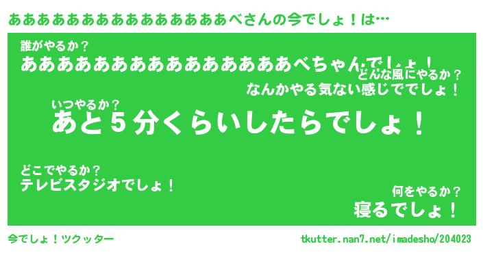 | 胡散臭い通販商品みたいなあだ名 | 『億万長者になれる水晶球…その名も「あああああああああああああああべ」』 |