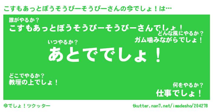 | 欧米人風あだ名 | 『マイケルこすもあっとぼうそうぴーそうぴー』 |