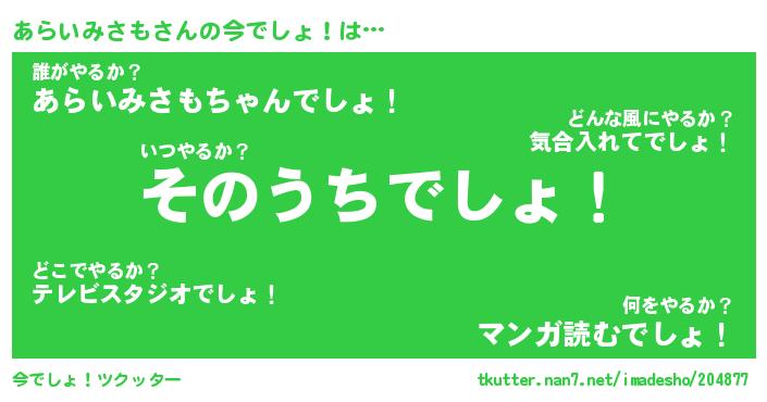 | 胡散臭い通販商品みたいなあだ名 | 『必ず成功する霊験あらたかなお札…その名も「あらいみさも」』 |