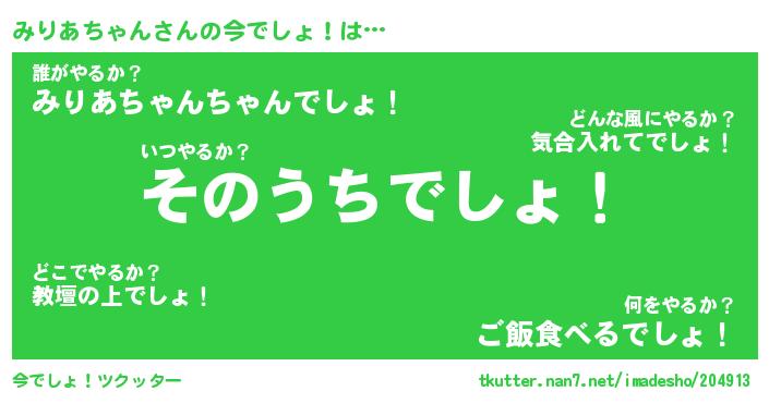 | 胡散臭い通販商品みたいなあだ名 | 『必ず成功するブレスレット…その名も「みりあちゃん」』 |