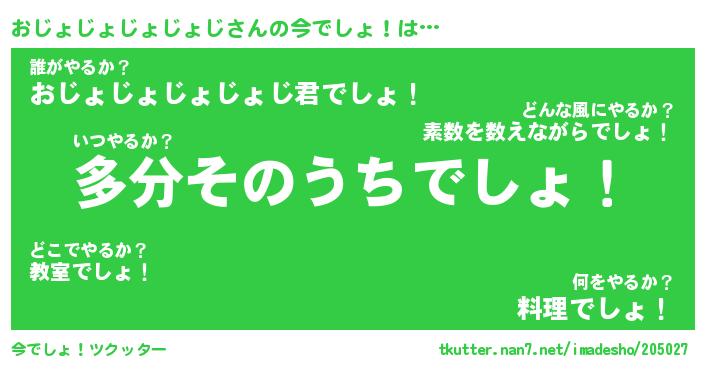 | 料理風あだ名 | 『節約★おじょじょじょじょじと油揚げの玉子丼』 |