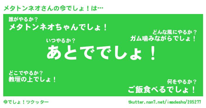 | ヘコむあだ名 | 『メタにゅー』『酢こんぶ』『メタを』 |